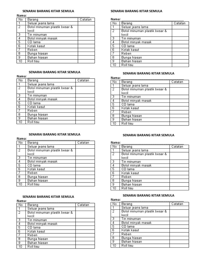 Senarai Barang Kitar Semula Pdf